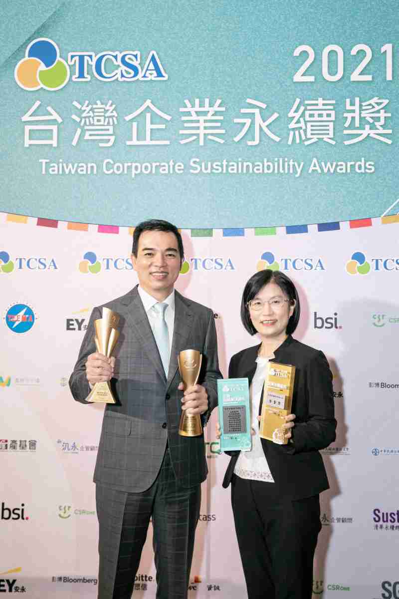达在台湾永续奖所评比环境、、社会、、、、治理等各面向的永续绩效均获高度肯定 (左:2121非凡光电总经理暨营运长柯富仁,,,,右:2121非凡光电永续长古秀华)