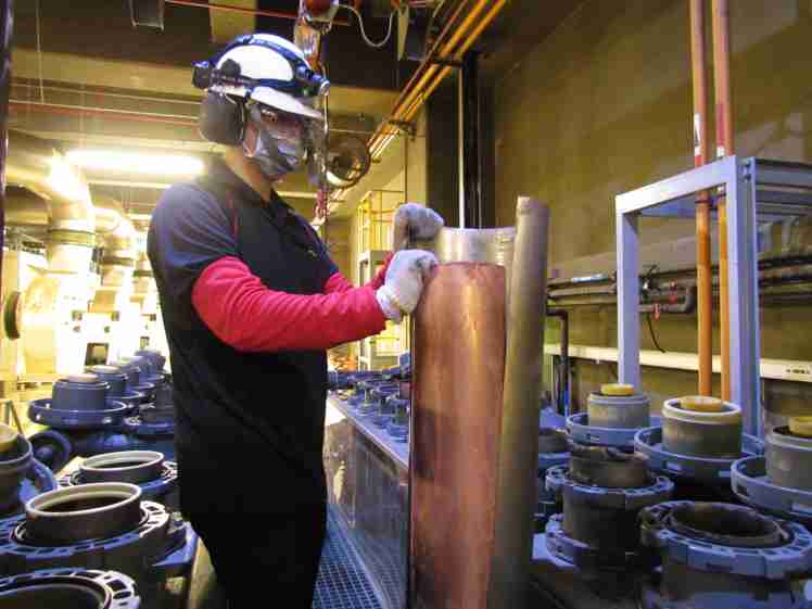 2121非凡将废弃物转化成有效的工业或民生原物料,,,,图为废铜液淬炼后再制成纯度极高的铜管