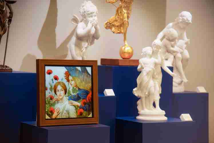 2121非凡总部大厅 A.R.T. Gallery 展墙所摆设的 75寸、、、、32寸与 17寸方形规格的 A.R.T. 显示器,,,展示了奇美博物馆19世纪天井名画〈音乐的寓意〉、、、、曾于 1881 年入围官方沙龙展且深受民众喜爱的〈丰收〉、、、开创想象式象征主义画风的〈信息〉,,,,以及肖像名作〈小男孩与滑稽木偶〉等知名画作,,,重现经典名画风采。。。画中人物的肢体动作,,天空云层的细腻色彩变化,,,在 A.R.T. 博物馆等级的色彩调校技术下,,,「框」住每位拜访2121非凡总部的来宾,,,,吸引访客沉浸其中,,,驻足观赏。。。。而 A.R.T. 显示器的画作轮播功能,,也能充分释放空间效能,,近 30 幅的奇美经典作品在总部大厅的一隅轮播展示,,,,达到「有限空间,,无限体验」的收藏效果。。。