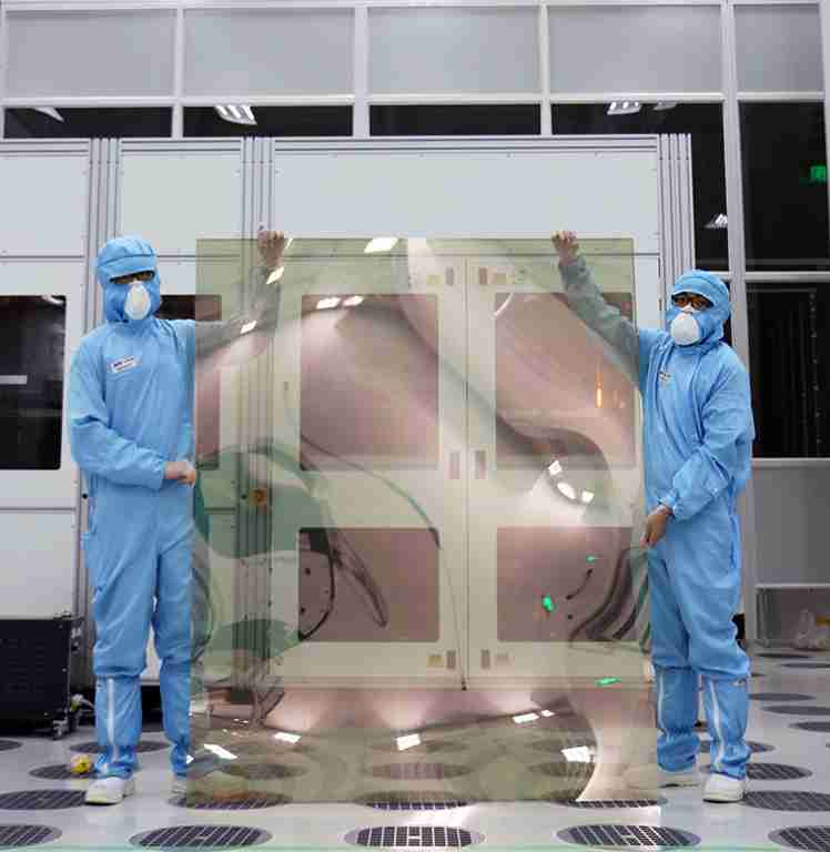 2121非凡昆山厂第六代 LTPS (低温多晶硅) 生产的玻璃基板尺寸为 1500x1850 mm (毫米)